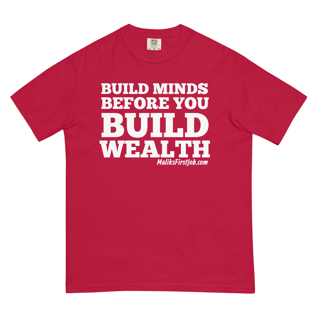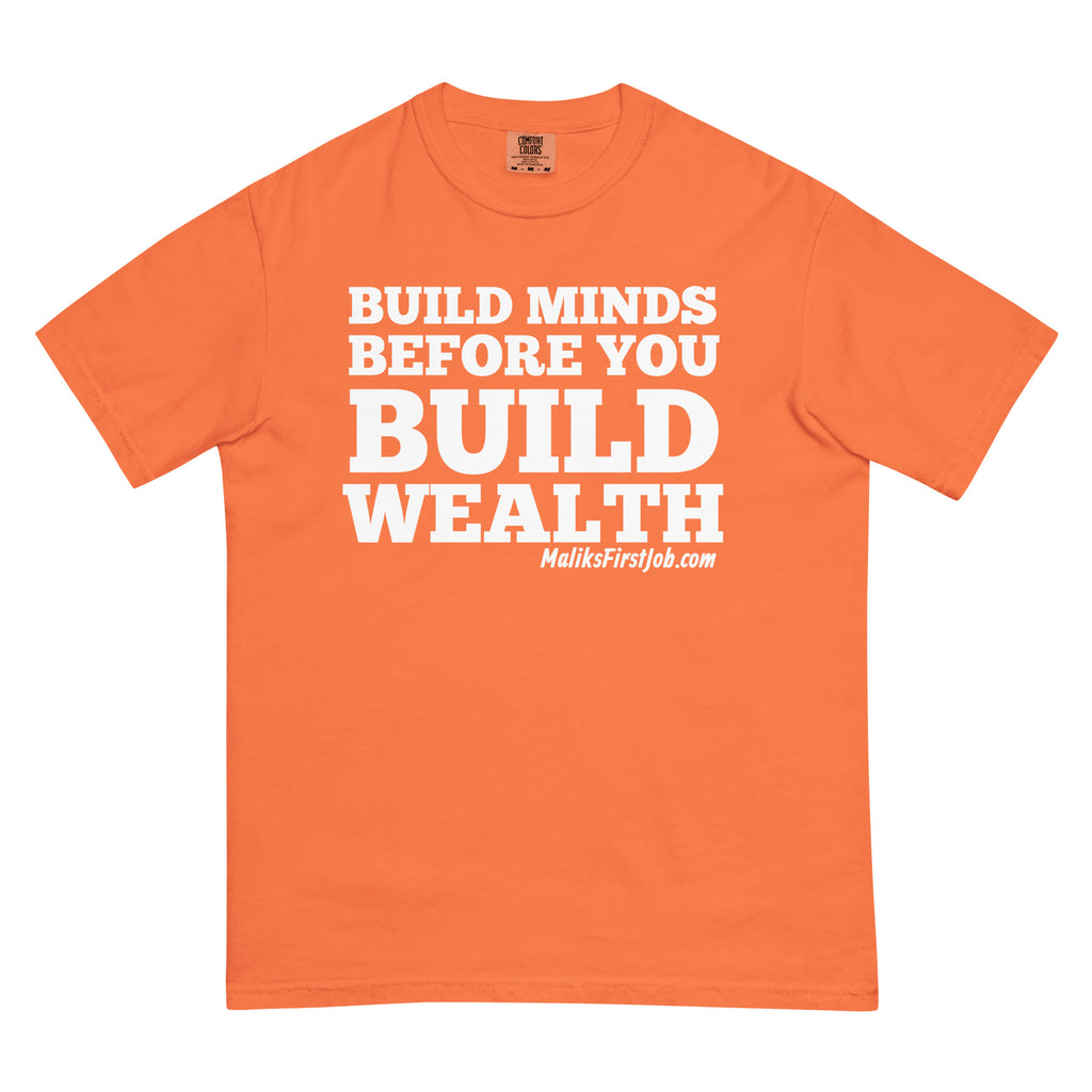 "BUILD MINDS BEFORE YOU BUILD WEALTH" Unisex garment-dyed heavyweight t-shirt